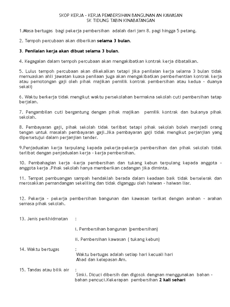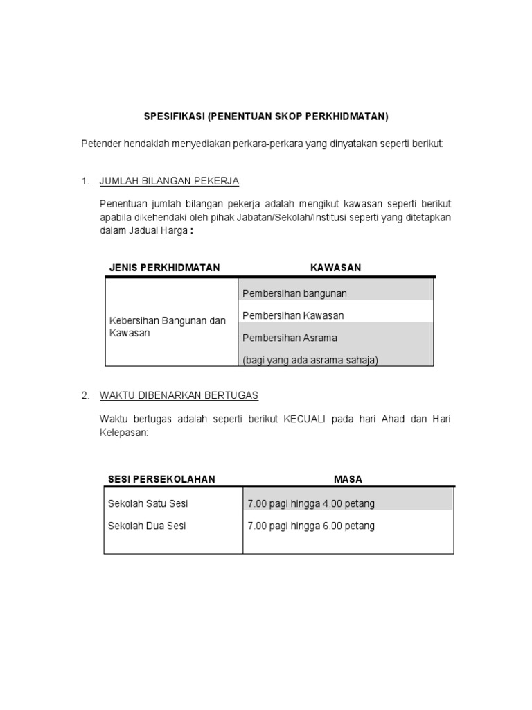 Spesifikasi Skop Perkhidmatan Pembersihan Pdf